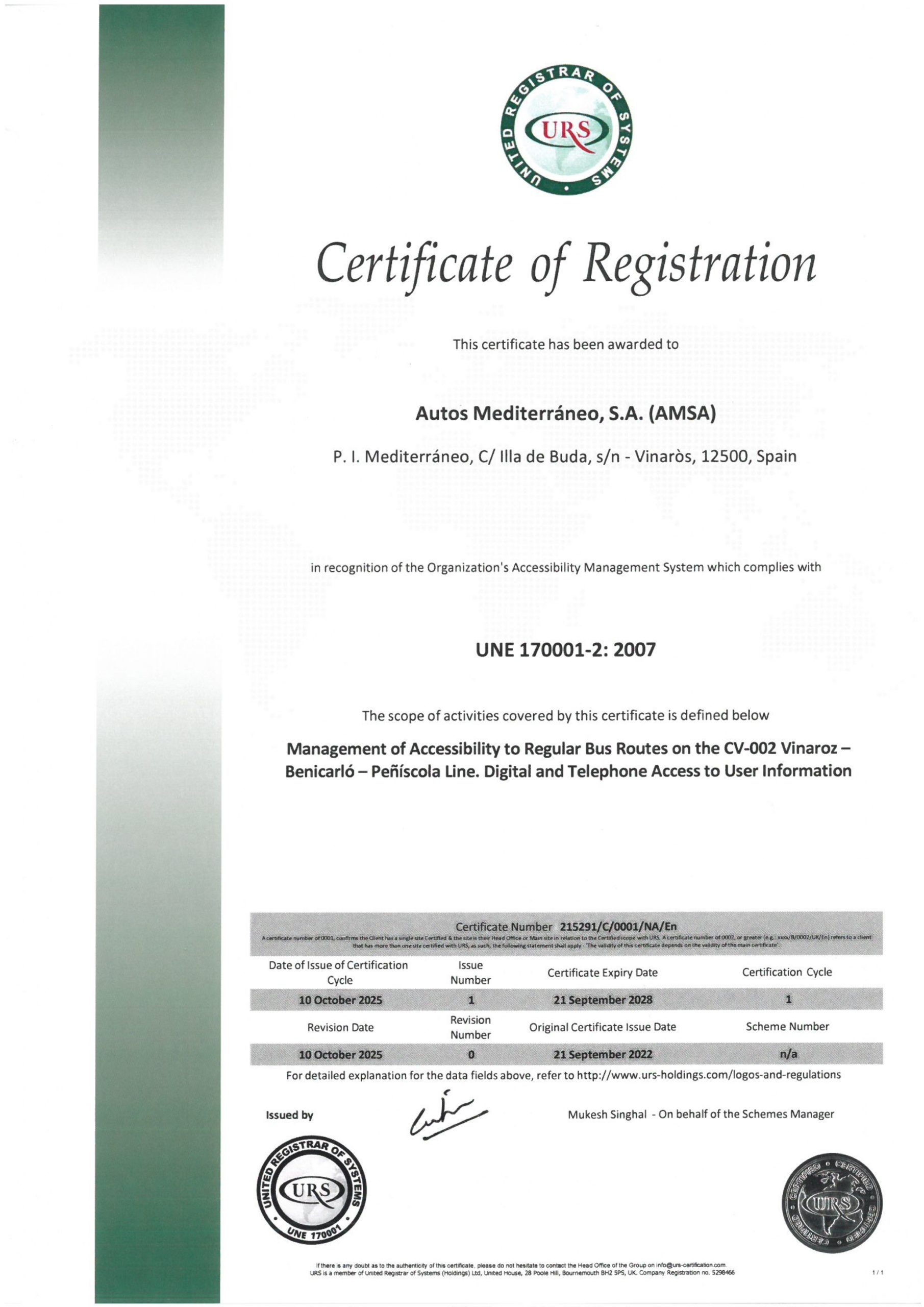 *UNE-EN 13816: Línea Cs-Vin AP-7 y N-340; Línea Cs-Borriol